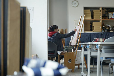 本格的なデッサンができるスペース。絵を描くのに使用するイーゼルをはじめ、さまざまなモチーフや資料も用意しています。