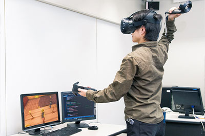 OculusやVIVEなどの最新VR端末とハイスペックPCを駆使し、VRゲームを開発できます。