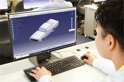 先進のCADソフト「CATIA」を全国の専門学校で初めて導入しました。業界で広く使われる「Auto CAD」専用の教室もあります。※CATIAはDessault Systems社の登録商標です。