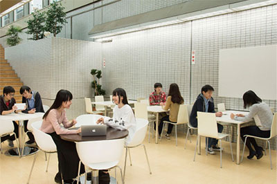 学生が自由に使える地下ラウンジはランチ場所に使われたり、意見交流の場所に使われたり、いつもにぎわっています。