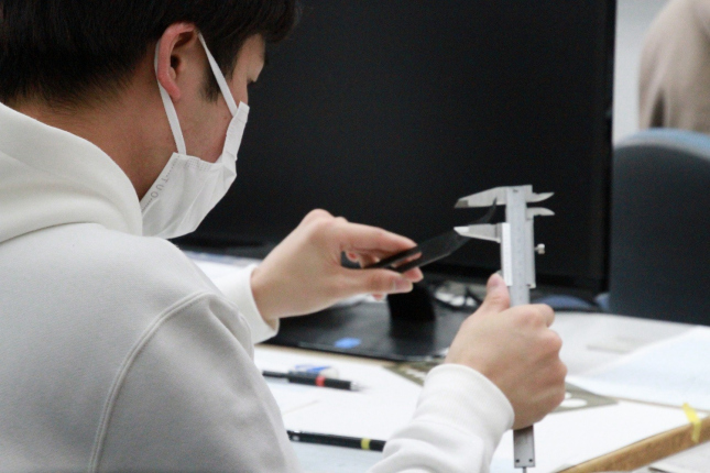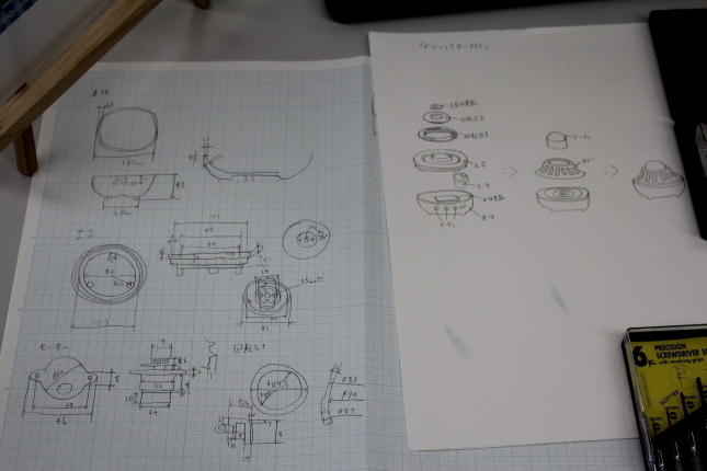 CATIAで制作する前に、形をより理解する上でも測定したデータを基に手描きで簡単な図面を制作します。