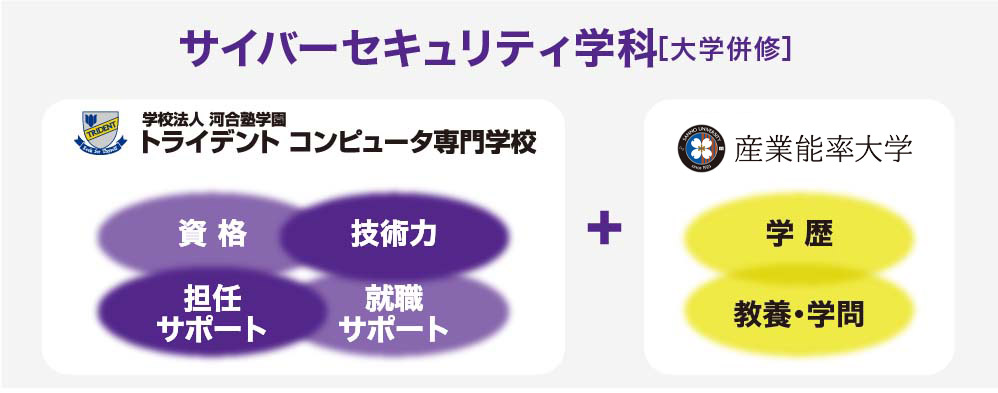 サイバーセキュリティ学科の年間の授業料は、本校の高度情報学科の年間の授業料+20万円です。つまり、産業能率大学の年間の授業料20万円を追加するだけで、専門学校と大学の2校に在籍できます。