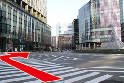 横断歩道を渡り、ジュンク堂書店の左側の道路へ進む。 -