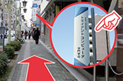 ビルの右側の道路へ進み、そのまま、まっすぐ進む。 -