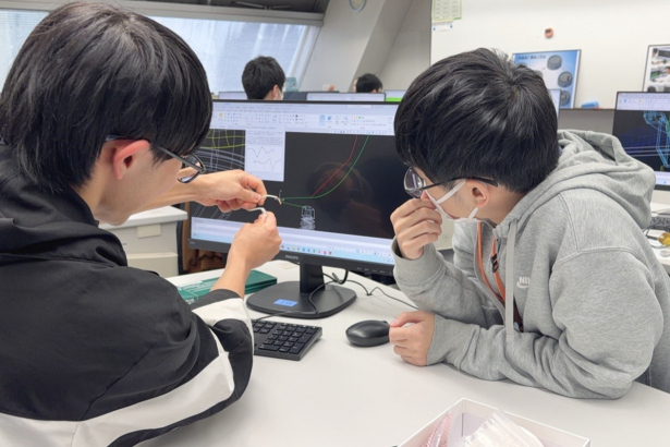 学生同士で意見を出し合いながら試行錯誤中。