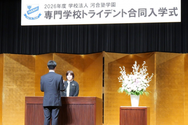 トライデントコンピュータ専門学校の入学生が代表して、